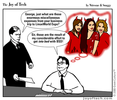 Welcome to the Joy of Tech... our new daily comic, illustrated by Nitrozac and written by Nitrozac and Snaggy. It's a little bit simpler in style than After Y2K, and will be more topical, and we hope you'll enjoy it!