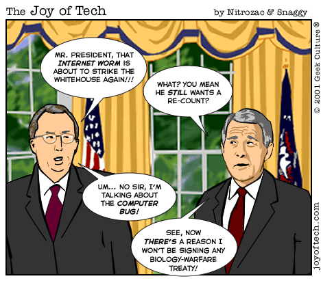 HomeGeek Culture... Geek Love, Geek Files, Mind Numbing Magazine, all kinds of geeky stuff!The Webstore! Get some cool stuff, and support your fave comic creators!e-Cards!The ForumsThe Joy of Tech! ...your quick fix of comic fun!After Y2K!webcam!