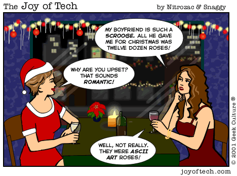 • Wow, twelve dozen ASCII roses! How did he afford the bandwidth!
