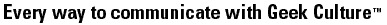 If you feel like using ancient information technology, mail us a card or letter at: Geek Culture Box 77, Union Bay, British Columbia V0R 3B0 Canada |