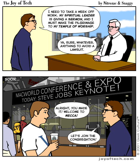 | Welcome to the Joy of Tech... by Nitrozac and Snaggy. It's a little bit simpler in style than our other comic After Y2K, and a little more topical. We hope you enJoy! |