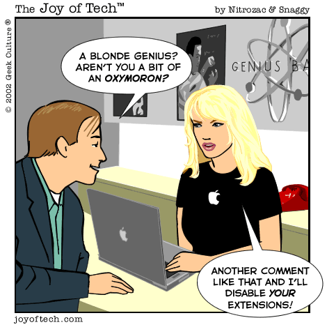 - The blonde genius, in a very professional manner, rebooted his TiBook without extensions.