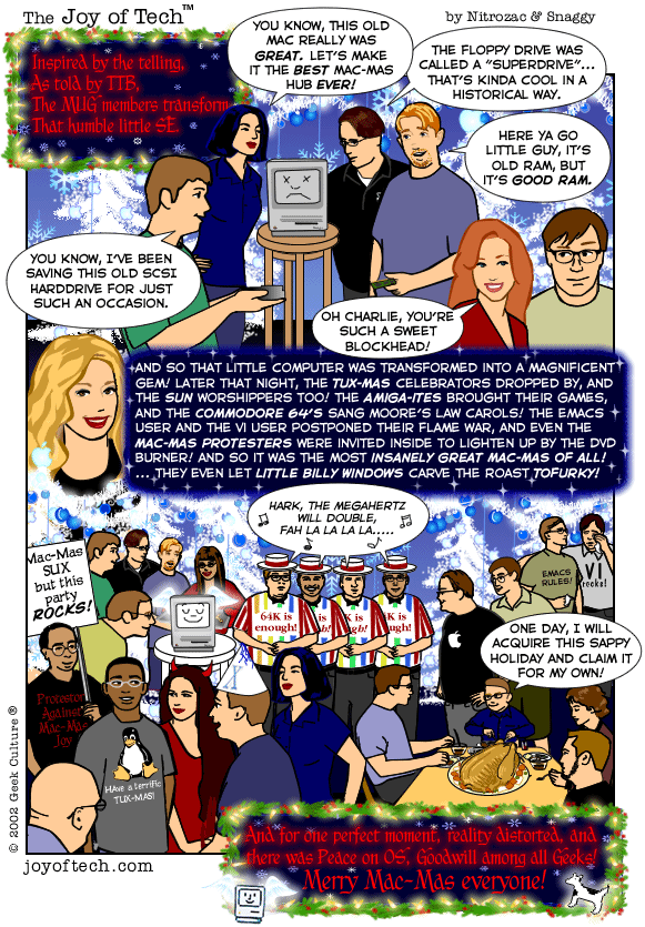 If you're using a Mac and a newer version of Explorer, here's a neat trick courtesy of MacMerc. Drag the above little image to the top tool bar of your browser, it should "stick" afterwards. Now you have a graphical link to the Joy of Tech, one that will update everytime a new comic is uploaded. (You may have to refresh the image manually if it's in your cache.) If you need to delete or move it it, just control button/click and hold, then select delete, or just Command/drag it to the trash.