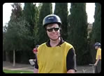 Snaggy (in yellow) gets his Segway legs during the Newbie match. It looked like so much fun, Nitrozac tried a couple of the "chuckers" of the game (quarters). Everyone was very kind to her on the field, and didn't pummel her too badly. ;-p Indeed, fun was had by all!